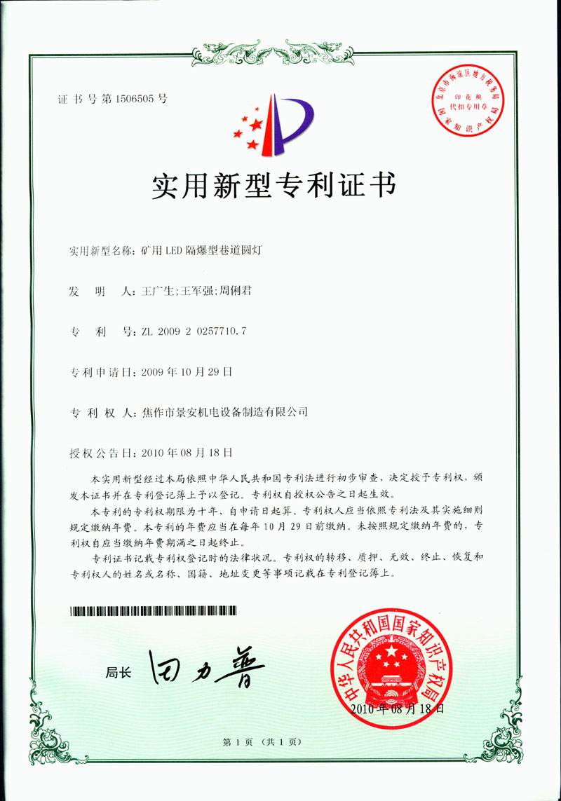 焦作景安公司始終堅持“以科技為先導,以市場為導向”的發(fā)展戰(zhàn)略,不斷進行新產品的研制和開發(fā),在國家“六五”到“九五”期間,承擔和參與了國家多項科技攻關項目。并被中國電器工業(yè)協(xié)會評定為“質量可信產品”。特別是在礦用防爆燈領域,礦用隔爆型半導體(LED)照明燈具,2008年列入國家火炬計劃,獲2009年河南省工業(yè)和信息化廳的科技成果二等獎,并擁有多項國家專利。